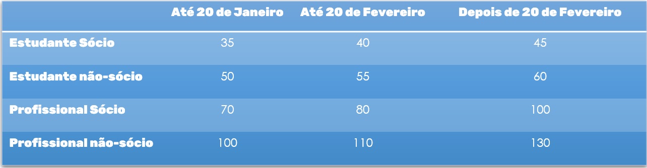 *Pagamentos via Paypal acrescem €5 ao valor da inscrição.